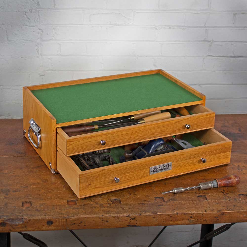 The chrome-plated steel hardware is hefty, durable and stylish, while the side handles allow for portability even when loaded with tools. Constructed of solid red oak and red oak veneer, the M20A Oak 2-Drawer Mid-Base will protect precious items from rust and moisture. The sturdy tongue-and-groove joinery highlights the beauty of hardwood construction and the quality of workmanship. This base will come with a set of two keys for the locking bar.