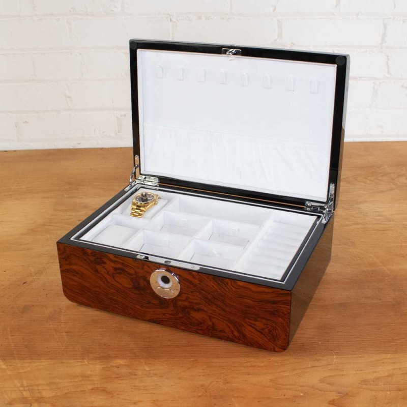 Gerstner International Burl Jewelry Chest with Piano Finish.